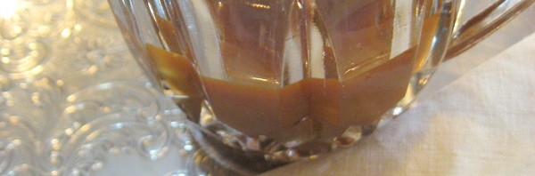 During our restaurant years every evening I made a gorgeous caramel sauce. We would liberally pour it over the house-made ice cream. The recipe was time consuming and demanding. So I started the hunt for a caramel sauce that one could whip up quickly and without too much stress.